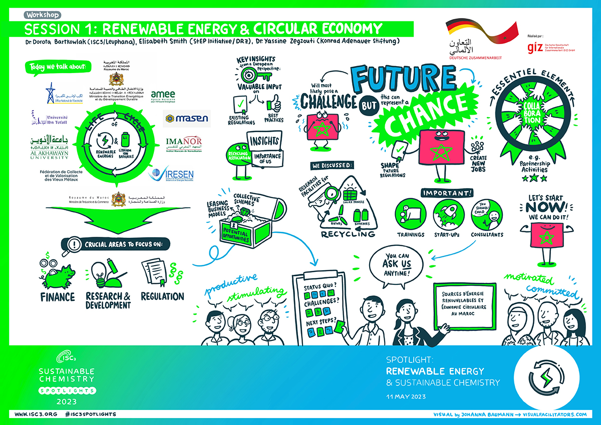 Experts from Moroccan ministries, research institutes and NGOs met in a workshop on “Renewable Energy and Circular Economy” held in Rabat on Thursday 11 May 2023. The workshop was enriched by international experts. Discussions revolved around the life cycle of renewable energy systems and lithium-ion batteries. The main topics included the current state of the industry, the challenges it faces, possible solutions and the necessary next steps.